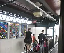 The eastern exits are now emergency exits leading to both western corners of Palmetto Street and Broadway, just east of Gates Avenue. These exits were closed in the 1980s due to high crime.[7][8] There is a closed station house around the intermediate level of the staircases.