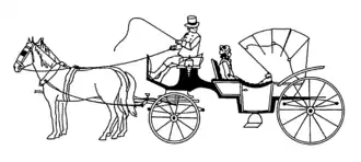 Average speed for carriages of this time was seven miles an hour. When general Tilney left Bath for Northanger, his 'handsome, highly-fed four horses' performed the journey of thirty miles at a sober pace, broken into two stages with a two hours' rest in between.[26] Even then, roads could be in poor state, as remarked by Mrs Norris, between Mansfield and Sotherton (Mansfield Park),[26] or even snowy. Normally only the privileged who earned seven hundred to a thousand pounds a year could afford a carriage, and driving sporting gigs and curricles was largely the preserve of the fashionable, elite male.[27]