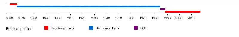 Below is a chart of party control in the South Carolina General Assembly since 1868.