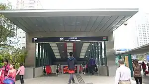 Grand Theater station (simplified Chinese: 大剧院站; traditional Chinese: 大劇院站; pinyin: Dà Jùyuàn Zhàn; Jyutping: Daai6 Kek6 Jyun2 Zaam6), formerly Dajuyuan is a station on Line 1 and Line 2 of the Shenzhen Metro. The Line 1 platforms opened on 28 December 2004 and the Line 2 platforms opened on 28 June 2011. It is located underneath the junction of Shennan Donglu (深南东路; 深南東路) and Jiefang Road (解放路) in the Luohu District of Shenzhen, China. The station takes its name from the Shenzhen Grand Theater (深圳大剧院; 深圳大劇院).[2] It is the closest station to The MixC (a major luxury shopping mall) and the Shenzhen Book City (深圳书城; 深圳書城).[3] It is an interchange station between Lines 1 and 2, and an indirect interchange with Line 9 at Hongling South Station.