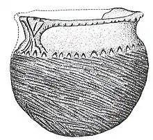 9,747 sherds were recovered in the 1947 excavations, with the pottery analysis based on 395 rim sherds and decorated body sherds.[9] In 1970–72, 3,746 sherds were recovered representing at least 64 vessels.[10]