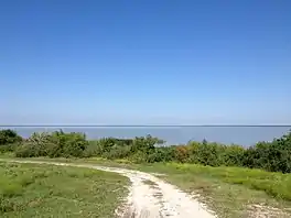 To improve drainage, a levee was constructed in 1969,[4] separating the lake from the Victoria Barge Canal,[5] which runs along the bay's northern and eastern shores; cutting off several bayous from the lake. The canal begins north at an industrial plant outside Victoria and empties in San Antonio Bay in Seadrift. Hog Bayou runs along the western shore of Green Lake, through the Guadalupe Delta Wildlife Management Area to the south, before its confluence with Mission Lake.[6]