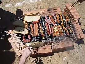 Today, hinged gridirons are used extensively to deep fry or broil fast food in restaurants throughout the world. Hot dog gridirons are also available for camping and outdoor cooking.