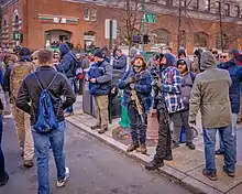 Closely related to the militia tradition is the frontier tradition, with the need for self-protection pursuant to westward expansion and the extension of the American frontier.[7]:10–11 Though it has not been a necessary part of daily survival for over a century, "generations of Americans continued to embrace and glorify it as a living inheritance  as a permanent ingredient of this nation's style and culture".[8]:21 Since the founding-era of American Federalist politics, debates regarding firearm availability and gun violence in the United States have been characterized by concerns about the right to bear arms, as found in the Second Amendment to the U.S. Constitution, and the responsibility of the United States government to serve the needs of its citizens and to prevent crime and deaths. Firearms regulation supporters say that indiscriminate or unrestricted gun rights inhibit the government from fulfilling that responsibility, and causes a safety concern. Gun rights supporters promote firearms for self-defense – including security against tyranny, as well as hunting and sporting activities.[9]:96[10] Gun control advocates state that restricting and tracking gun access would result in safer communities, while gun rights advocates state that increased firearm ownership by law-abiding citizens reduces crime and assert that criminals have always had easy access to firearms.[11][12] Gun legislation in the United States has become increasingly subject to federal judicial interpretation of the Constitution. The Second Amendment to the U.S. Constitution reads: "A well regulated Militia, being necessary to the security of a free State, the right of the people to keep and bear Arms, shall not be infringed."[13] In 1791, the United States adopted the Second Amendment, and in 1868 adopted the Fourteenth Amendment. The historical tradition bounded by these two amendments has been the subject of U.S. Supreme Court decisions in District of Columbia v. Heller (2008), where the Court affirmed for the first time that the Second Amendment guarantees an individual right to possess firearms for traditionally lawful purposes (such as self-defense within the home), independent of service in a state militia, in McDonald v. City of Chicago (2010), where the Court ruled that the Second Amendment's restrictions are incorporated by the Due Process Clause of the Fourteenth Amendment and thereby apply to state as well as federal law, and most recently in the NYSRPA v. Bruen (2022). As emphasized in Bruen, the Second Amendment makes an "unqualified command" that the "individual-right" of firearms ownership, as opposed to the collective or militia-based theory of the right, is protected from all restriction unless a government authority can demonstrate their law is with the Nation's historical tradition of firearms regulation.[14]