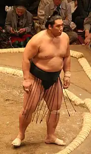 Hōmashō Noriyuki (born April 16, 1981 as Yōsuke Yamamoto in Shimonoseki, Yamaguchi Prefecture, Japan), is a former sumo wrestler. He turned professional in March 2004 and reached the top makuuchi division in May 2006 as the first sekitori from Shikoroyama stable, without any losing scores on his record. His highest rank was komusubi. He earned seven special prizes in his top division career and was a runner-up in three tournaments. In March 2014 he took the championship in the jūryō division. Hōmashō was a popular wrestler among sumo fans, and was noted for his deep and graceful bow at the end of a match.[1] Upon his retirement in January 2015 he became an elder of the Japan Sumo Association under the name of Tatsutagawa.