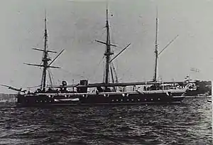 During the Samoan civil unrest in 1899, she took part in operations with HMS Porpoise and HMS Tauranga.[2] She left the Australia Station in June 1899.[2] In February 1900 she was hulked and used for harbour service, she was renamed Colleen on 1 December 1913. The Antarctic explorer Tom Crean, who had been part of both Captain Scott's and Ernest Shackleton's expeditions, served in Colleen as a boatswain during the later years of World War I.