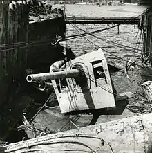 The destroyer's forward gun after the explosion
