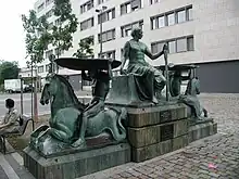 • Industrie- und Handelsbrunnen, 1912, Bronze.,[10]:16 für die Düsseldorfer Städteausstellung erstellt, 1913 in Köln-Mülheim aufgestellt