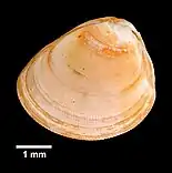 A saltwater tellin Clam, member of the family Tellinidae inside Cardiida. |