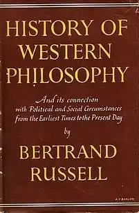 - ↑ Full title A History of Western Philosophy And Its Connection with Political and Social Circumstances from the Earliest Times to the Present Day – the indefinite article was deleted in the British editions.