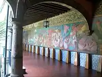 The Church of Jesus Nazareno was stripped bare. However, the choir and part of the nave conserve a long mural painted by José Clemente Orozco. The work was inspired both by the Apocalypse and the horrors of the Second World War. Orozco worked on this from 1942 to 1944, but left it uncompleted.[4]