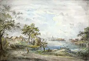 Rest by this spring: the view towards Stockholm from Djurgården in Bellman's time. Watercolour by Elias Martin, c. 1790