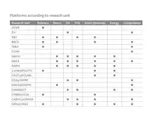 - EHS (Environment, Health, Security): interaction of nanosystems with biological entities, in pharmacology, therapies, and any other human environment (descending from the Neuroscience platform, the Drug Discovery and Development platform and from the nanobiotech facilities. Relevant for future safety standards at nanoscale currently targeted by all advanced countries, and of great relevance for quality assessment in many fields such as new materials, environment, pharmacology, food and agriculture, new security standards for living creatures and human environment in the presence of nanosystems);