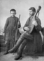 Kucherenko was a virtuoso player of the bandura and had an exceptional baritone voice which left an excellent impression on the audience. Khotkevych noted: