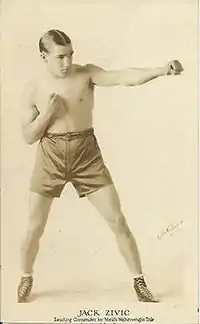 John A. Zivic (June 23, 1903 May 22, 1973) was an American boxer who competed in the featherweight class in the 1920 Summer Olympics in Antwerp.[1] He was a serious contender for the world lightweight championship in 1924, but was defeated by reigning junior lightweight champion Jack Bernstein in an elimination tournament. He had a solid punch and was known for his left hook.