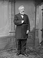 Blaine received the news at his home in Washington and telegraphed Hayes his congratulations.[71] In the subsequent contest of 1876, Hayes was elected after a contentious compromise over disputed electoral votes.[72] The results of the convention had further effects on Blaine's political career, as Bristow, having lost the nomination, also resigned as Treasury Secretary three days after the convention ended.[71] President Grant selected Senator Lot M. Morrill of Maine to fill the cabinet post, and Maine's governor, Seldon Connor, appointed Blaine to the now-vacant Senate seat.[71] When the Maine Legislature reconvened that autumn, they confirmed Blaine's appointment and elected him to the full six-year term that would begin on March 4, 1877.[71][lower-alpha 4]