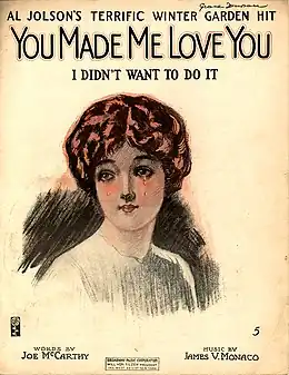 He played piano at cafes in Manhattan and at Coney Island, and wrote his first successful song, "Oh, You Circus Day", which was featured in a Broadway revue, Hanky Panky, in 1911. Further success came the following year with "Row, Row, Row" (lyrics by William Jerome) in the Ziegfeld Follies of 1912, and perhaps his best remembered song, "You Made Me Love You" (with lyrics by Joseph McCarthy), which was introduced by Al Jolson in 1913 and performed by Judy Garland with revised lyrics as "Dear Mr Gable" in 1937.[2]