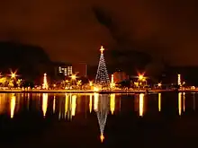 There is also the Solón de Lucena Park Lagoon in the City Center. The lagoon was the main tourist spot in the city during the time when most of the city was far from the beaches. At the end of 2010, during the Christmas celebrations, the lagoon was revitalized and gained devices such as ambient music.[20]