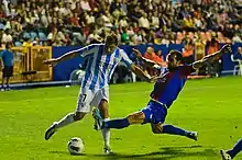 On 24 June 2011, Joaquín signed with Málaga for three years, for a fee of €4 million.[15] He made his debut for the club on 28 August in a 2–1 away loss against Sevilla FC,[16] and opened his scoring account by netting twice in another local derby, a 4–0 home defeat of Granada CF.[17]