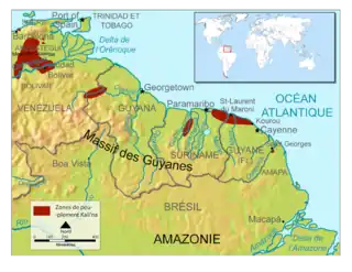Map indicating the current geographic distribution of the Kali'na population
