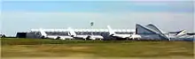 Kansas City already owned Grandview Airport south of the city with ample room for expansion, but the city chose to build a new airport north of the city away from the Missouri River following lobbying by Platte County native Jay B. Dillingham, president of the Kansas City Stockyards, which had also been destroyed in the flood.[5] TWA moved its Fairfax plant to the new airport and also its overseas overhaul operations at New Castle County Airport in Delaware.[6]