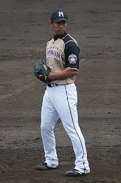 Keisaku Itokazu (糸数 敬作, born November 7, 1984) is a Japanese former professional baseball pitcher in Japan's Nippon Professional Baseball. He played for the Hokkaido Nippon-Ham Fighters from 2009 to 2012.