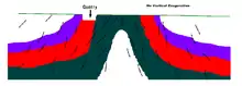 ![]() Deformation involving bending and overturning is evident in the layered limestones exposed by quarrying at the Kentland impact structure. | |