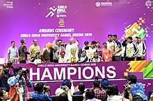 Khelo India University Game is a national level multi-sport event held in India, where athletes from universities across the country compete in different sports disciplines.[1] The inaugural edition held in Odisha started on 22 February and concluded on 1 March 2020.[2] It is organised by Sports Authority of India (SAI) and Ministry of Youth Affairs and Sports along with Association of Indian Universities, Indian Olympic Association and National Sports Federation.[3][4] It is the largest university level sports competition in India.[5]