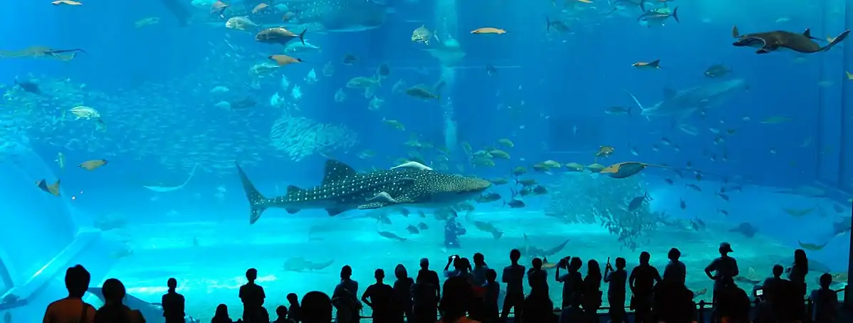 The Okinawa Churaumi Aquarium (沖縄美ら海水族館, Okinawa Churaumi Suizokukan), formerly known as the Okinawa Ocean Expo Aquarium, is located within the Ocean Expo Park in Okinawa, Japan. It is a member of the Japanese Association of Zoos and Aquariums (JAZA), and was the largest aquarium in the world until it was surpassed by the Georgia Aquarium in 2005. The aquarium has the exhibit, "Encounter the Okinawan Sea",[7] which reproduces the sea of Okinawa and most of the creatures that live in it.[2] Churaumi was selected as the name of the aquarium by public vote amongst Japanese people: chura means "beautiful" or "graceful" in the Okinawan language, and umi means "ocean" in Japanese.