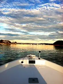 Construction of the Hartwell project took place from 1955 and was completed in 1963. Construction of the dam started in 1955 and was finished in 1959.[3] Salvage archeological excavations were conducted at several sites in an effort to recover artifacts and information from prehistoric and historic sites that would be inundated by Lake Hartwell.[5] Joseph Caldwell led a team from the University of Georgia in this work, especially from 1957 to 1959.[6] Lake Hartwell is named for the American Revolutionary War figure Nancy Hart. Nancy Hart lived in the Georgia frontier, and was known for her devotion to freedom. A county, city, lake, state park and highway among others, bear her name.[7]