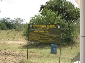 ![]() The entrance sign to Lake Mburo National Park | |