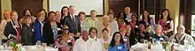 In 1921, the League was instrumental in passing the Sheppard-Towner Maternity and Infancy Protection Act, providing federal aid for maternal and child care programs.[2][14] In the 1930s, the League was supportive of New Deal programs such as Social Security and the Food and Drug Acts.[15][16] In 1945, the League advocated for the United Nations, the World Bank, and the International Monetary Fund, and was recognized by the UN as a permanent observer, giving it access to most meetings and relevant documentation.[17] [18] [19] [20] [21] [22][23] In the 1950s, League member Dorothy Kenyon was attacked as a Communist by Joseph McCarthy and president Percy Maxim Lee testified before Congress against Senator Joseph McCarthy's abuse of congressional investigative powers.[24] [25][26] In 1960, the League supported the Resources and Conservation Act of 1960 (S. 2549), beginning a long history of environmental engagement.[27] [28][29] In 1969, the League was one of the first organizations in the United States calling for normalizing relations with China.[30] [9]
