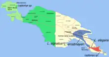 | Distribution map of species of Leptomys on New Guinea | |