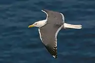 Laridae is a family of medium to large seabirds and includes gulls, terns, and skimmers. Gulls are typically grey or white, often with black markings on the head or wings. They have stout, longish bills and webbed feet. Terns are a group of generally medium to large seabirds typically with grey or white plumage, often with black markings on the head. Most terns hunt fish by diving but some pick insects off the surface of fresh water. Terns are generally long-lived birds, with several species known to live in excess of 30 years.