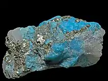 Crystals of turquoise, from Copper Cities Mine, Globe-Miami District, Arizona, USA
