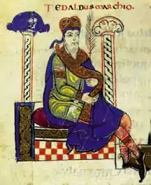 Tebald | 13 February 988 | 1007 | • Son of Adalbert Atto | Willa of Tuscany 2 children | |
