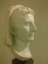 Rumor had it that Livia was behind the death of Augustus' nephew Marcellus in 23 BC.[14] After Julia's two elder sons by Marcus Vipsanius Agrippa, whom Augustus had adopted as sons and successors, had died, the one remaining son, Agrippa Postumus, was adopted at the same time as Tiberius, but later Agrippa Postumus was sent into exile and finally killed. Tacitus charges that Livia was not altogether innocent of these deaths[15] and Cassius Dio also mentions such rumours.[16] There are also rumors mentioned by Tacitus and Cassius Dio that Livia brought about Augustus' death by poisoning fresh figs, although modern historians view this as unlikely.[17][18] Augustus' granddaughter was Julia the Younger. Sometime between AD 1 and 14, her husband Lucius Aemilius Paullus was executed as a conspirator in a revolt.[19] Modern historians theorize that Julia's exile was not actually for adultery but for involvement in Paullus' revolt.[20] Tacitius alleged that Livia had plotted against her stepdaughter's family and ruined them. Julia died in AD 29 on the same island where she had been sent in exile twenty years earlier.[21]