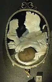 With Augustus being the father of only one daughter (Julia by Scribonia), Livia revealed herself to be an ambitious mother and soon started to push her own sons, Tiberius and Drusus, into power.[7] Drusus was a trusted general and married Augustus' favorite niece, Antonia Minor, having three children: the popular general Germanicus, Livilla, and the future emperor Claudius. Drusus was killed in a riding accident only a few years later, dying in 9 BC.[12] This was also the same year in which Livia was honored by the dedication of the Ara Pacis Augustae as a birthday present.[13] Tiberius married Augustus' daughter Julia in 11 BC and was ultimately adopted as Augustus' heir in AD 4.