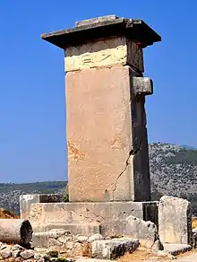 Inscribed Xanthian Obelisk (c. 400 BC), a funerary pillar for a sarcophagus that probably belonged to Dynast Kheriga.[3]
