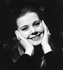 Lyudmila Petrovna Senchina (Russian: Людми́ла Петро́вна Се́нчина; 13 January 1948[5] or 13 December 1950,[6] – 25 January 2018) was a Soviet and Russian singer (soprano). In 1979 she was awarded the title of Meritorious Artist of the RSFSR and in 2002 the title of People's Artist of Russia.[5][1] Merited Artist of Ukraine (2003).[7] She made popular such songs as Cinderella (Russian: Золушка), Stones (Russian: Камушки), Love and Separation (Russian: Любовь и разлука), White Acacia (Russian: Белая акация), Birthday (Russian: День рождения), White Dance (Russian: Белый танец), Field Flowers (Russian: Полевые цветы).[8]
