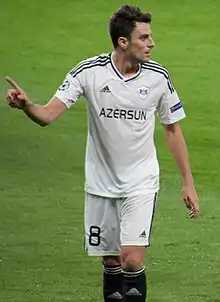 Míchel signed a two-year contract with Qarabağ of the Azerbaijan Premier League just ahead of the summer 2015 transfer deadline, and in time to be included in their Europa League squad.[27][28] He appeared regularly in his first year as Qarabağ won a third consecutive championship,[29] and scored four times in five Azerbaijan Cup ties  including a goal in the last minute of extra time to decide the final against Neftchi Baku  as his team completed a double.[30] He played in 40 matches in all competitions to help Qarabağ achieve another double in the 2016–17 season,[1] at the end of which his contract was extended for a further two years.[31]