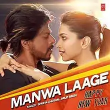 "Manwa Laage" (transl.My heart feels this) is a romantic Hindi song from the 2014 Bollywood film, Happy New Year. Composed by Vishal–Shekhar, the song is sung by Shreya Ghoshal and Arijit Singh, with lyrics penned by Irshad Kamil.[1] The music video of the track features actors Shahrukh Khan and Deepika Padukone.[2]