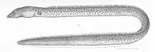 The Marble-toothed snake-eel (Pisodonophis daspilotus, also known as the Blunt-toothed snake eel[2]) is an eel in the family Ophichthidae (worm/snake eels).[3] It was described by Charles Henry Gilbert in 1898.[4] It is a marine, tropical eel which is known from the eastern central and southeastern Pacific Ocean, including Costa Rica, Colombia, Panama and Ecuador.[5] It dwells in shallow waters at a maximum depth of 10 metres (33 ft), and inhabits sand and mud sediments and mangroves. Males can reach a maximum total length of 68 centimetres (27 in).[3]