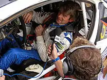 Marcus Ulf Johan Grönholm (born February 5, 1968) is a Finnish former rally and rallycross driver, being part of a family of the Swedish-speaking population of Finland lineage. His son, Niclas Grönholm, is an upcoming FIA World Rallycross Championship driver. Grönholm's nicknames are either "Bosse" (mainly in his native Finland and the Scandinavian countries) or "Magic Marcus". Grönholm is one of the most successful WRC drivers of all time, ranking third in rally wins (30), and winning two championships, in 2000 and 2002. After Peugeot withdrew from the World Rally Championship, Grönholm moved to Ford for the 2006 season and placed second in the drivers' world championship, losing out to Sébastien Loeb by one point. The next year he again placed second, four points behind Loeb. He and his co-driver Timo Rautiainen retired from rallying after the 2007 season but returned to the championship in 2009 driving a private Subaru for a short period of time, and in the 2019 World Rally Championship where he competed in a Toyota Gazoo Racing WRT-maintained Toyota Yaris under the GRX Team banner.[1]
