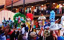Lake Charles hosts a family-friendly Mardi Gras celebration with nine parades.[41] With over 50 krewes, it is second only to New Orleans in the number of krewes in Louisiana.[42] The Lake Charles Mardi Gras celebration is unique in that it is the only place in Louisiana where the public is invited to see the costumes of all the krewes in one place, at the Lake Charles Civic Center.[43] Mardi Gras began in Lake Charles as early as 1882 when King Momus landed on the lakefront to begin the celebration.[44] With the onset of the World Wars, Mardi Gras in Lake Charles was not celebrated as much, but was revived in the latter part of the century. This celebration begins in Lake Charles on January 6 each year. The last parade is the Krewe of Krewes Parade in downtown Lake Charles.[45] Mardi Gras in Lake Charles regularly draws 150,000 people.[46] In addition, Mardi Gras can be enjoyed in Lake Charles year round at the Mardi Gras Museum of Imperial Calcasieu, which features elaborate costumes and an interactive float.[47] This museum houses the world's largest collection of Mardi Gras costumes.[48]