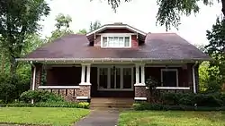 The J. M. McClintock House is a historic house at 43 Magnolia Street in Marianna, Arkansas. It is a 1+12-story wood-frame structure, designed by Charles L. Thompson and built in 1912, whose Craftsman/Bungalow styling is in marked contrast to the W.S. McClintock House, a Colonial Revival structure designed by Thompson for another member of the McClintock family and built the same year. This house has the broad sweeping roof line with exposed rafters covering a porch supported by brick piers and paired wooden box posts on either side of the centered stair. A dormer with clipped-gable roof is centered above the entry.[2]