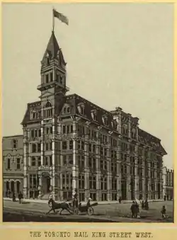 The Mail Building in Toronto c. 1870. It headquartered The Toronto Mail newspaper, which operated from 1872 to 1895, when it merged with Toronto Empire to form The Mail and Empire.