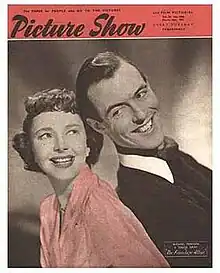 After a seven-week pre-London tour, beginning in August 1950, Denison and Gray opened at the Ambassadors Theatre as Michael and Agnes in The Fourposter, a two-hander, charting the married life of a couple.[20] For the cinema they starred in The Franchise Affair (1951),[21] and after a cameo as a reporter in The Magic Box (1951),[22] Denison had a major role in a war film, Angels One Five.[8] In December 1951 he and Gray starred in a BBC television adaptation of Arnold Bennett and Edward Knoblock's play Milestones.[23]
