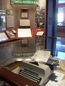 • "James A. Michener: A Living Legacy" - an exhibit dedicated to the museum's namesake, James A. Michener. This exhibit recreates his Bucks County office where he wrote Tales of the South Pacific. The exhibit features the desk, chair, typewriter, dictionary and other objects from the office in James A. Michener's Bucks County home where he lived and worked for more than 35 years.
