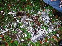 A rocky glen runs up from Monkcastle with a significant waterfall and a listing as part of a Scottish Wildlife Trust local site for nature conservation. The glen was partly formed from quarrying work for freestone.[35] A previous course of the Monkcastle Burn can still be followed and this probably resulted from the quarrying intruding into the original course of the burn at the head of the glen resulting in a waterfall and the burn then following the bed of the glen itself. The geology consists of Carboniferous limestone, macroporphyritic basalt, and an overlay of basalt and boulder clay. The quarry workers are thought to have made used of Old Monkcastle as office space for storage, etc. The OS maps show that quarrying had ceased by the start of the 20th century.[35]
